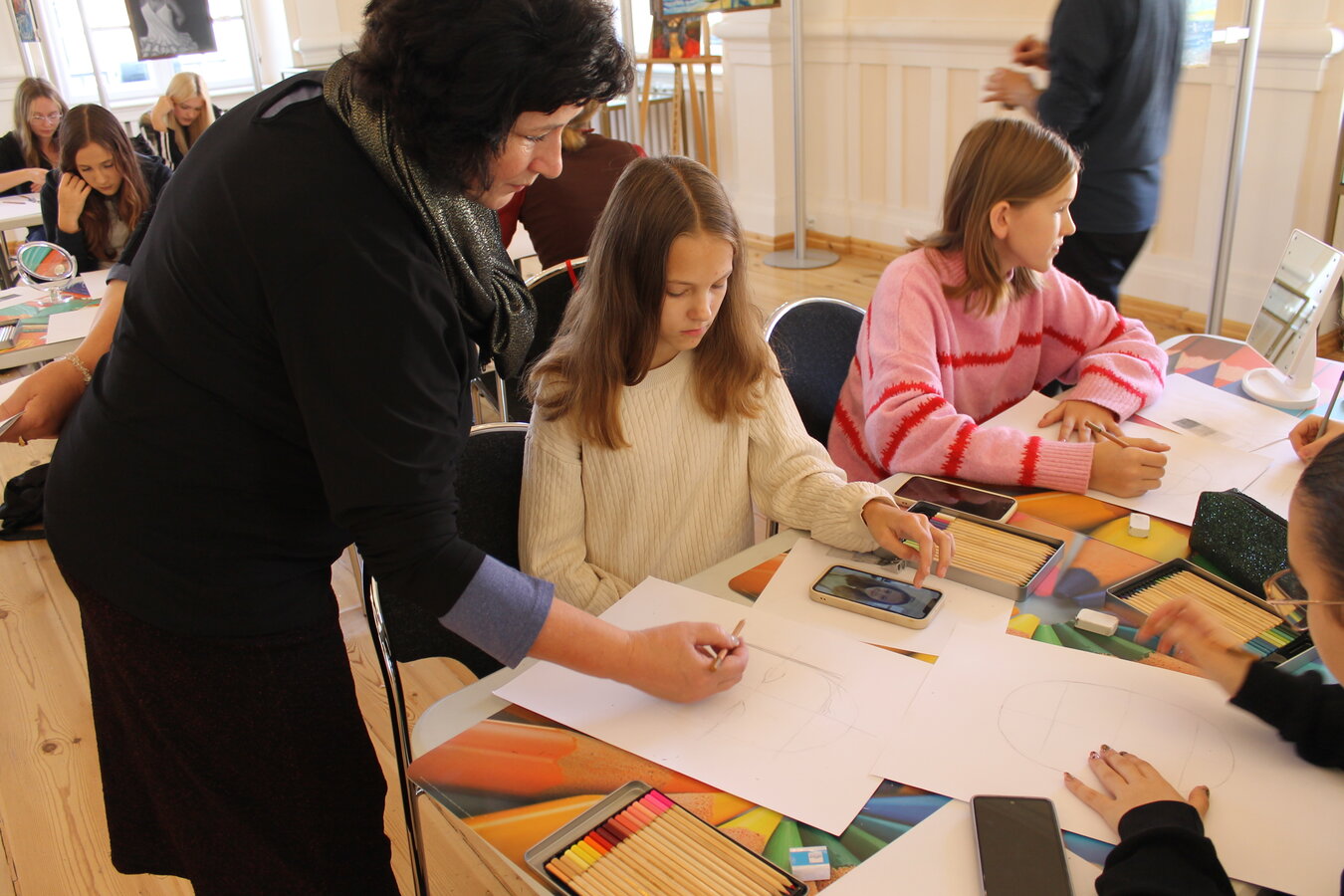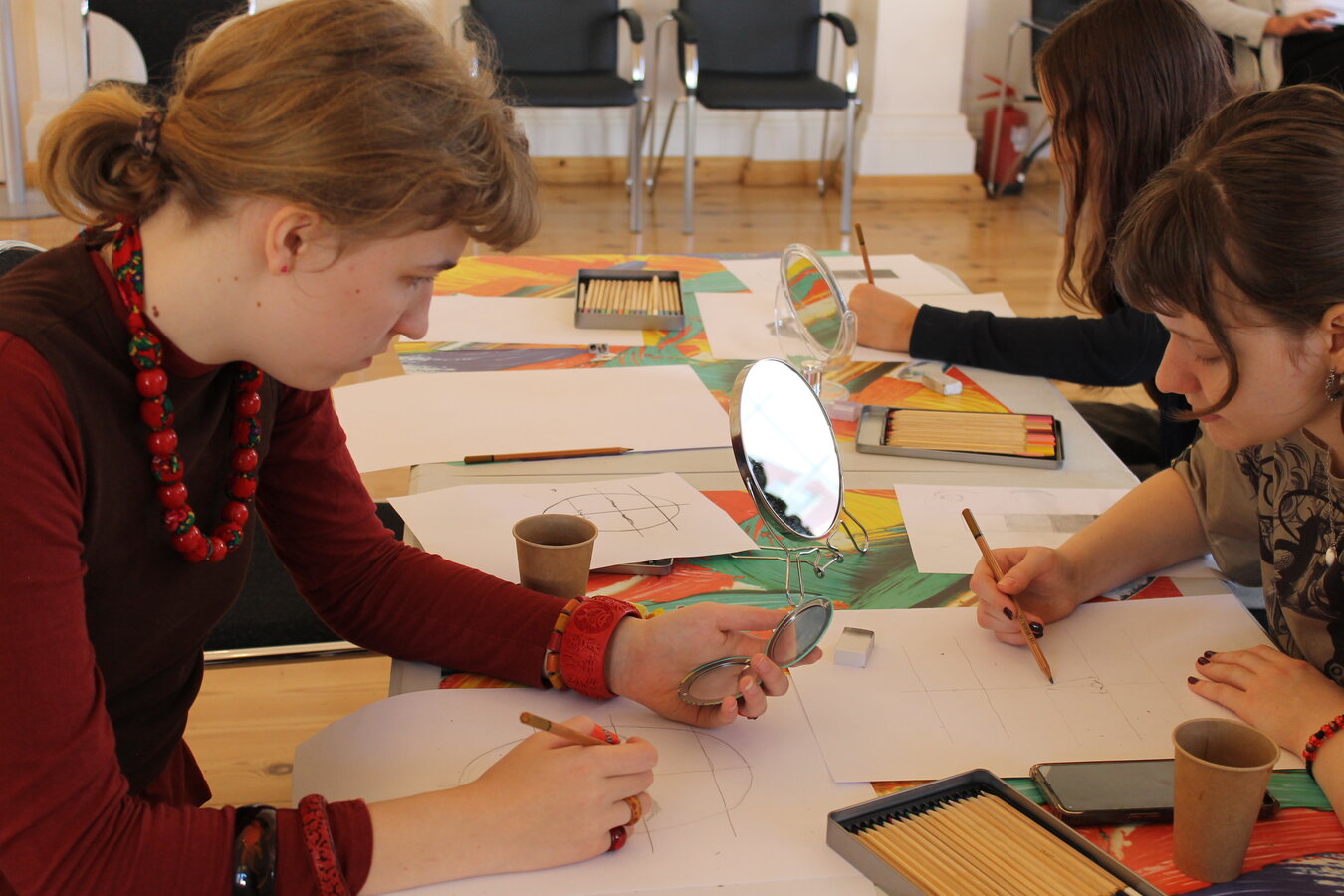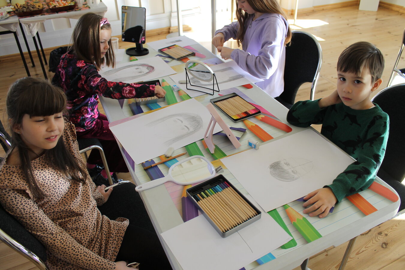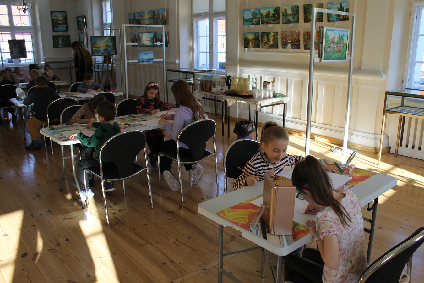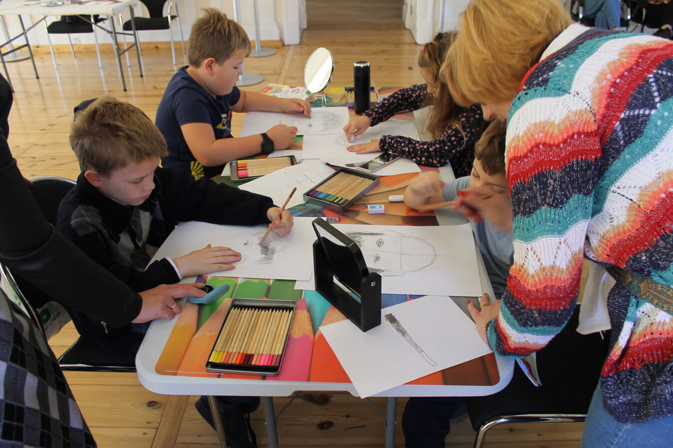 W niedzielę 19 października odbyły się warsztaty plastyczne. 30 uczestników, zgromadzonych w dwóch grupach wiekowych tworzyło swój autoportret pod okiem artystki malarki Pani Ivety Filipczykovej. Przed przystąpieniem do rysunku, Pani Iveta dała młodym artystom wskazówki dotyczące zasad tworzenia autoportretu. Wśród uczestników były również 2 młode dziewczyny z Republiki Czeskiej, które były również uczestniczkami II Polsko-Czeskiego Biennale Malarskiego dla Dzieci w Racocie.