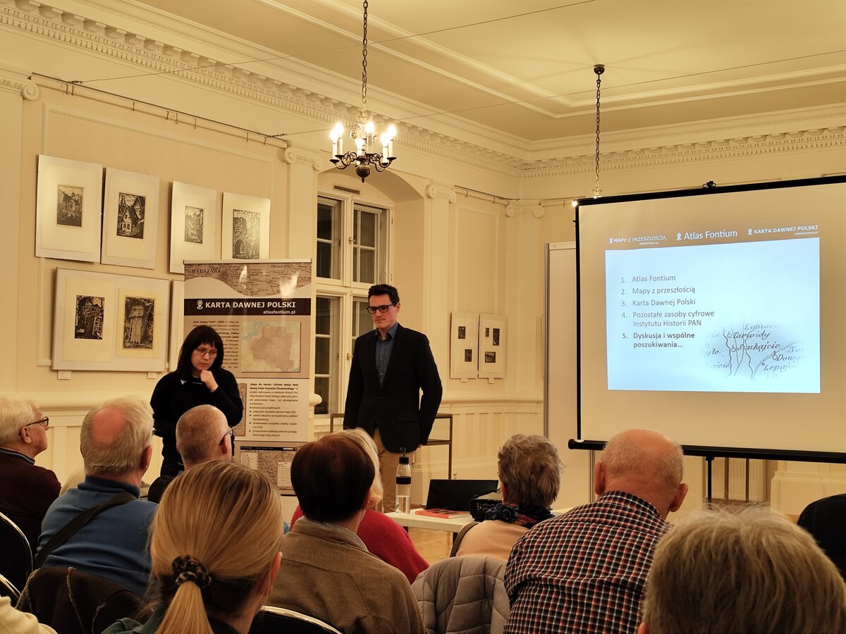 Podczas wydarzenia zaproszeni goście omówili „Atlas Fontium” – portal poświęcony publikacji źródeł historycznych, wyników badań naukowych oraz danych badawczych, a także „Mapy z przeszłością” - geoportal prezentujący dawne i historyczne mapy Polski nałożone na współczesne dane geograficzne, a także „Kartę Dawnej Polski” – cyfrową edycję dawnej mapy, udostępnioną online. Dziękujemy prelegentom za omówienie tematu wydarzenia,, szczególnie w zakresie źródeł związanych z miastem Kościanem oraz wszystkim zainteresowanym osobom, które zechciały nas odwiedzić w czwartkowy wieczór.
