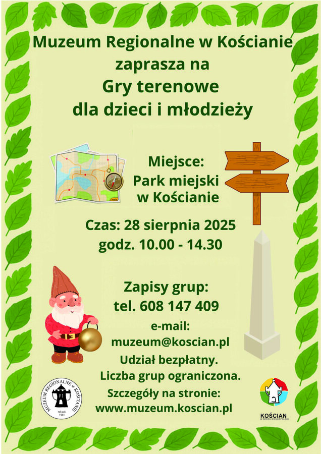 Muzeum Regionalne w Kościanie zaprasza dzieci i młodzież do wzięcia udziału w zabawie terenowej na obszarze parku miejskiego.