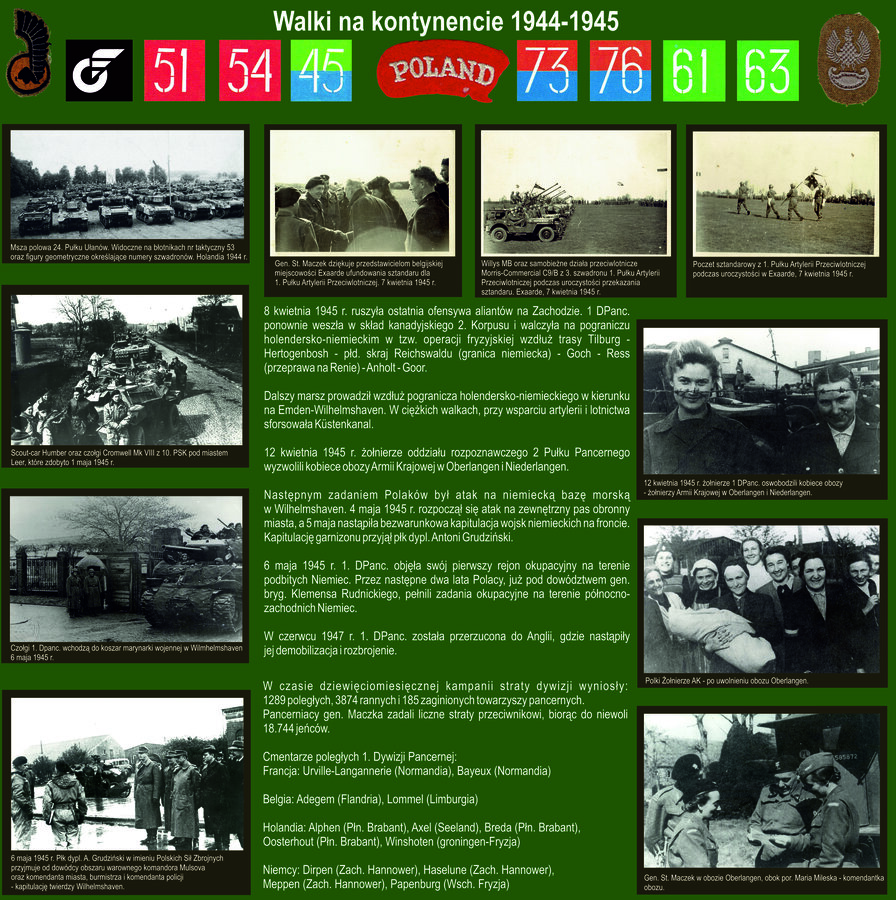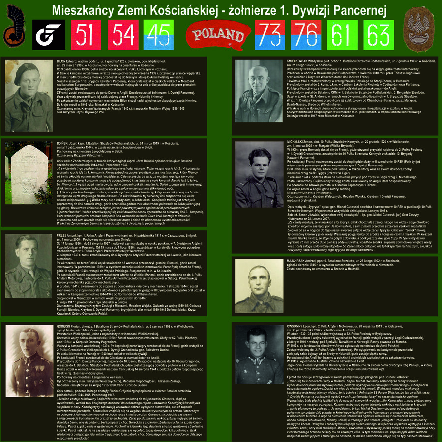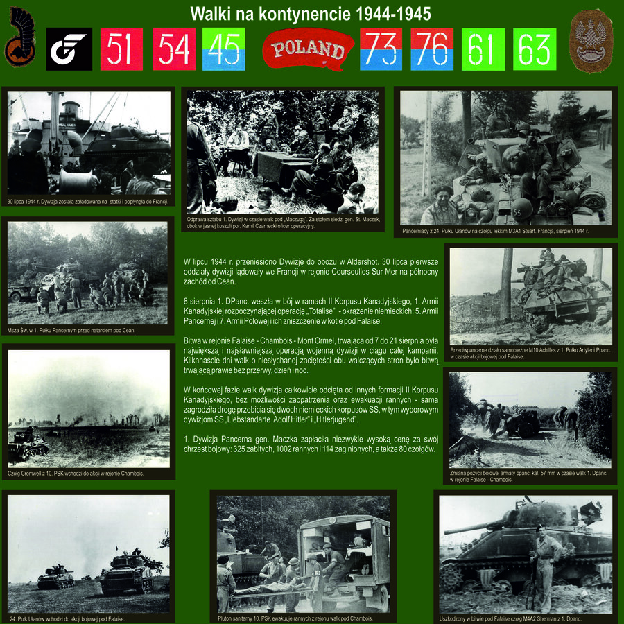 W dniach 12-21 sierpnia 1944 r. toczyła się walka o zdobycie miejscowości Falaise w Normandii. Przejęcie tego ważnego punktu niemieckiego oporu stało się możliwe dzięki poświęceniu żołnierzy z 1. Dywizji Pancernej gen. Stanisława Maczka. Pragniemy przypomnieć sylwetkę dowódcy, jego żołnierzy (także tych z ziemi kościańskiej) oraz najważniejsze walki jakie stoczyli na zachodzie.
