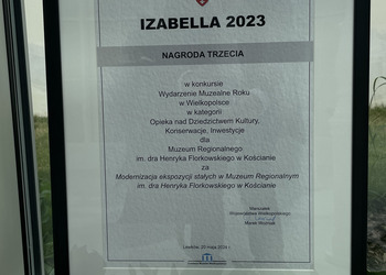 W piątek 24 maja 2024 r. przedstawiciele kościańskiego muzeum odebrali z rąk Pana Marka Woźniaka, Marszałka Województwa Wielkopolskiego nagrodę w konkursie IZABELLA 2023.