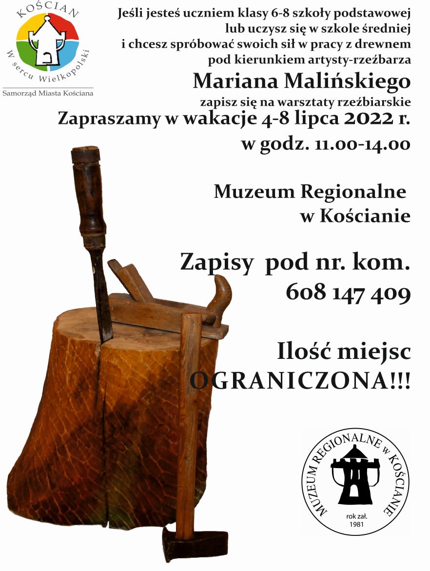 Serdecznie zapraszamy na IX edycję warsztatów rzeźbiarskich pod okiem artysty-rzeźbiarza Pana Mariana Malińskiego.