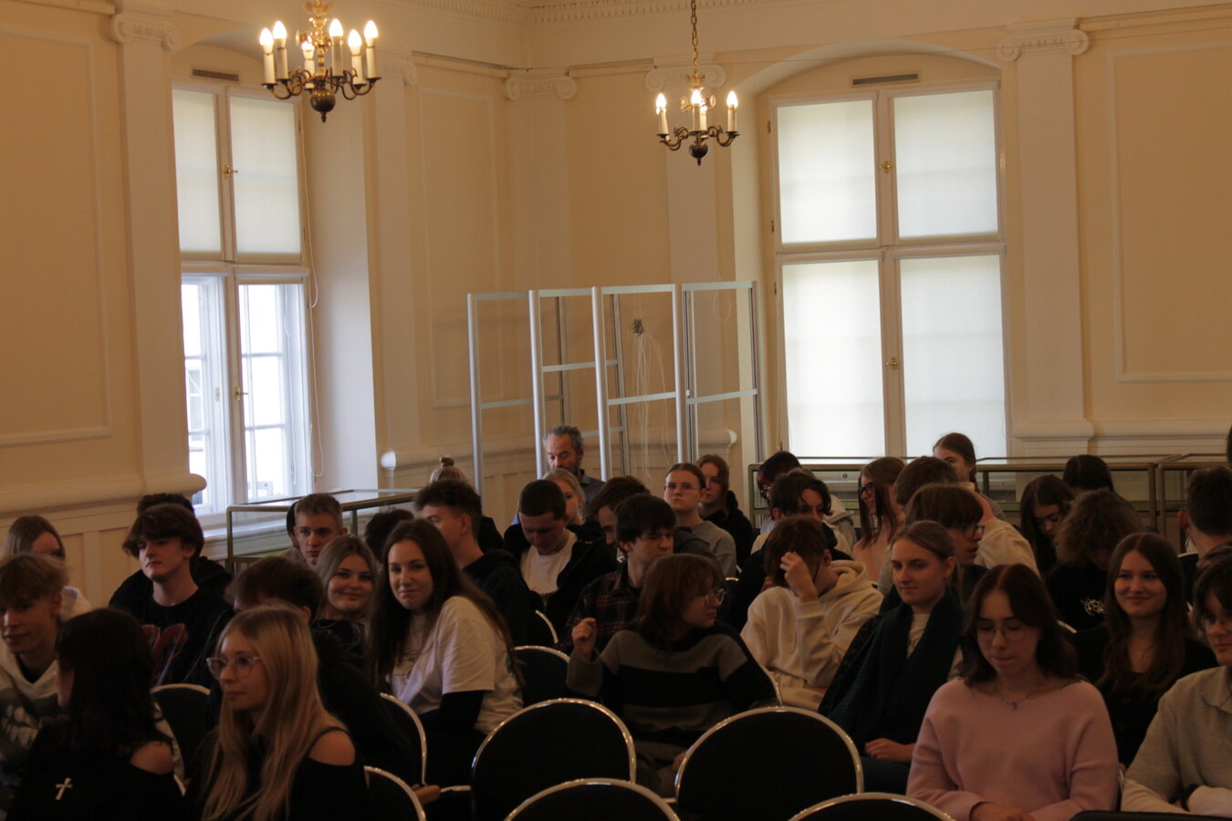O godz. 12.45 wykładu wysłuchały dwie klasy z Liceum Ogólnokształcącego w Kościanie, których uczniowie dowiedzieli się, co zostało odkryte na stanowisku w Wyskoci, jakimi metodami badano pozostałości po grobowcu megalitycznym, kim byli przedstawiciele kultury pucharów lejkowatych, a także czym charakteryzuje się okres neolitu, z którego pochodzą grobowce.