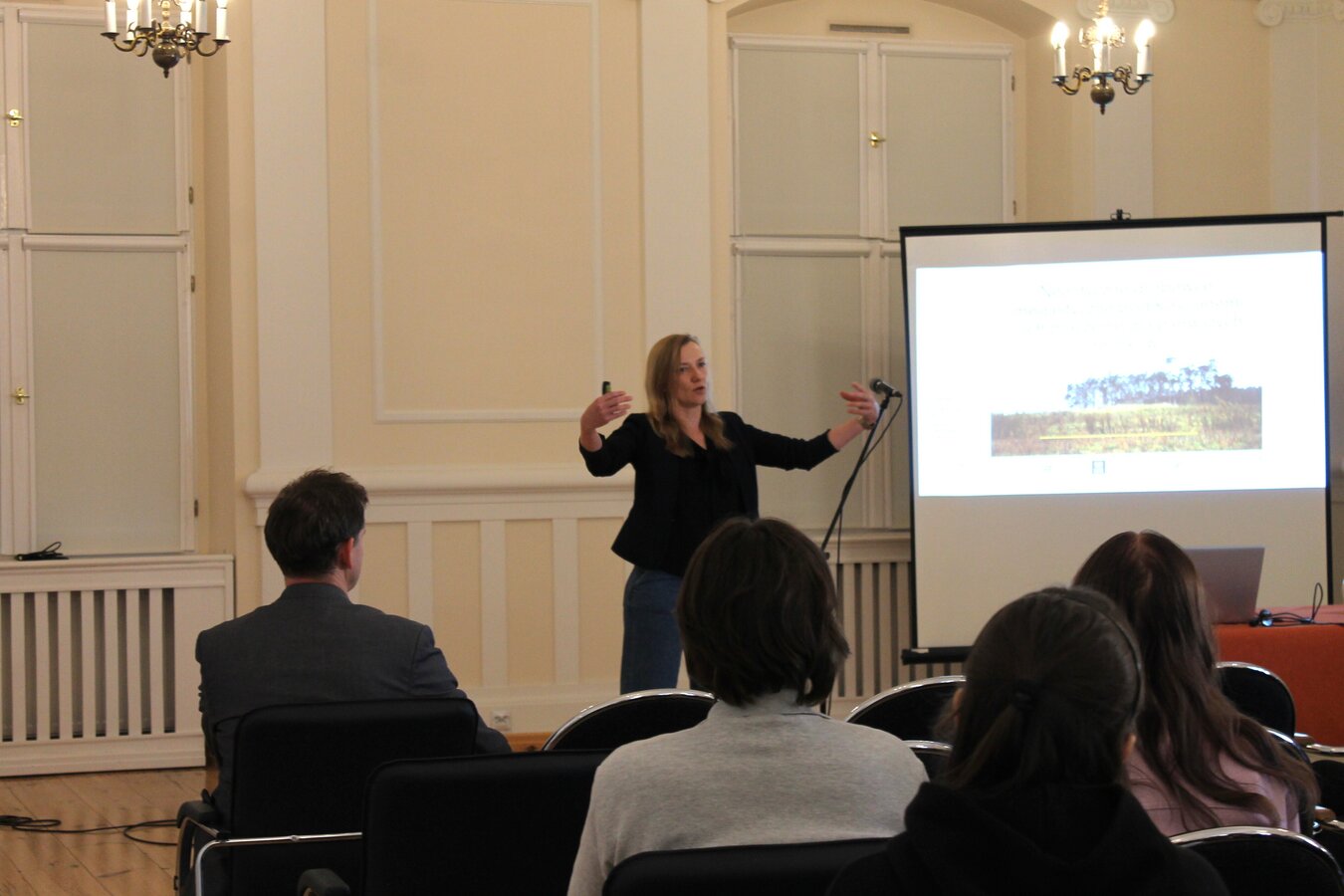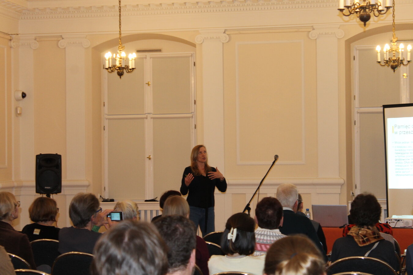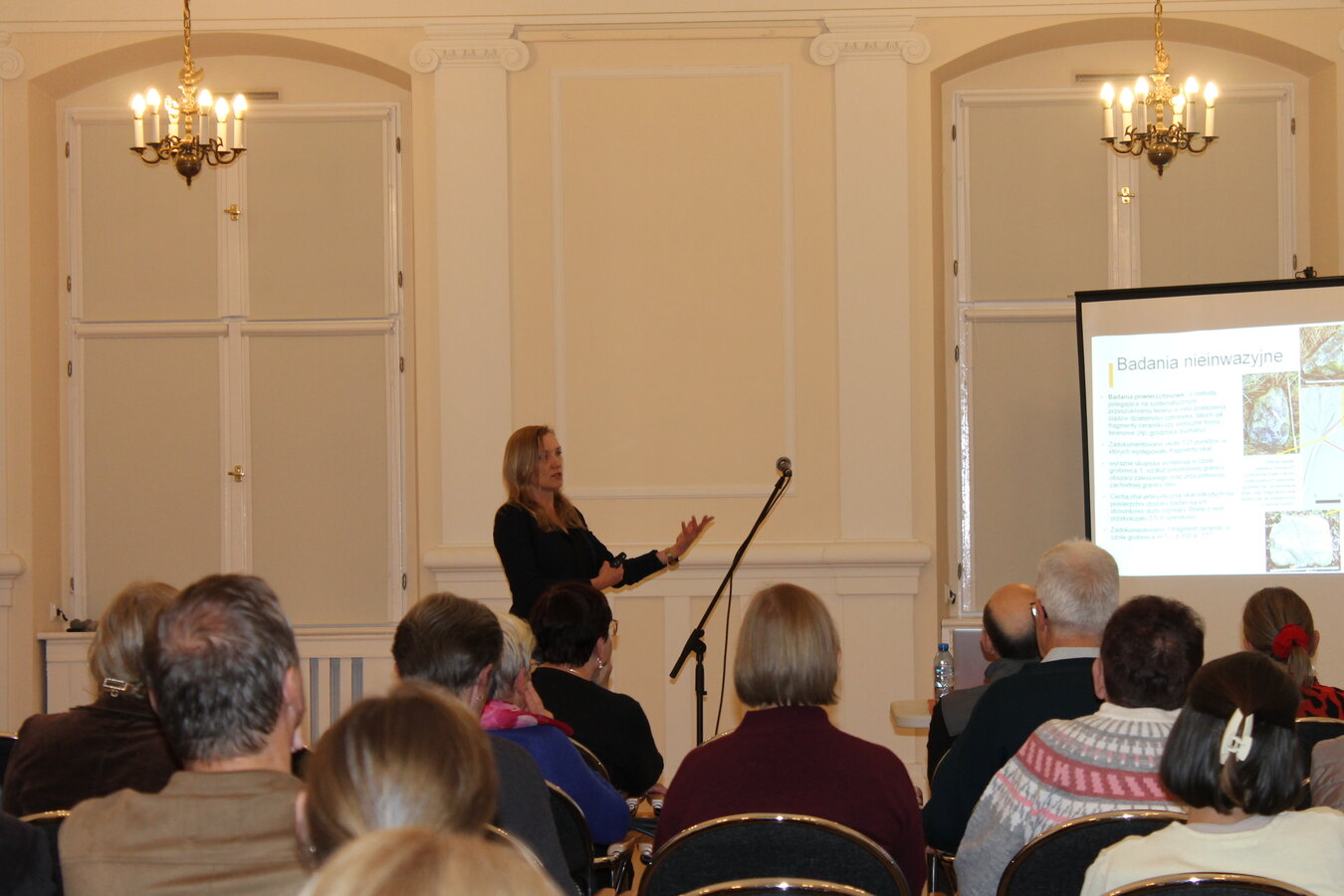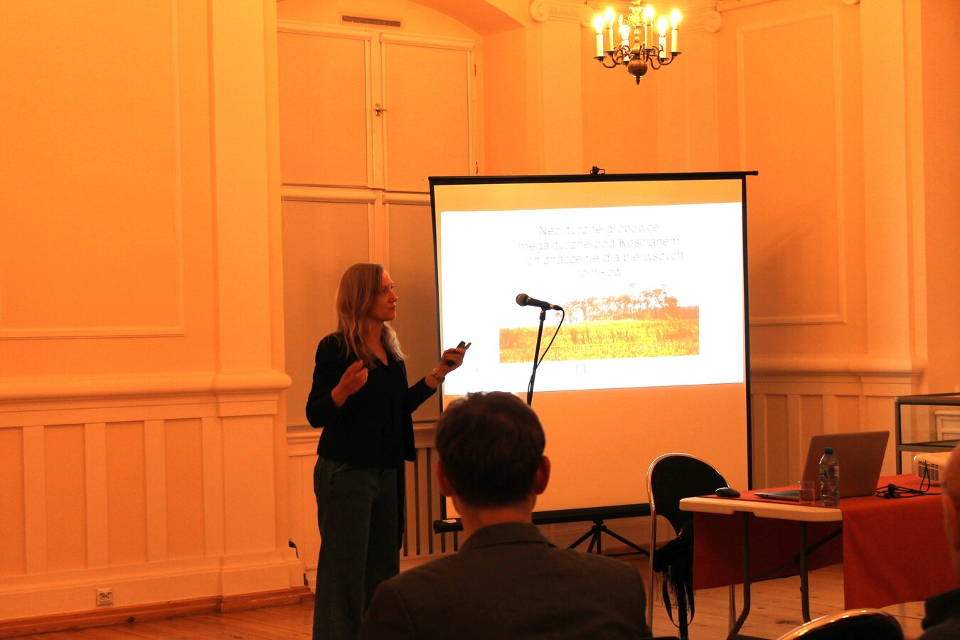 O godz. 18.00 Pani Doktor Danuta Żurkiewicz opowiedziała o grobowcach megalitycznych, które odnaleziono na stanowisku i o badaniach, które do tego doprowadziły. Przedstawiła również różne metody badawcze: nieinwazyjne (badania powierzchniowe, magnetometryczne, detekcja metali) oraz inwazyjne, czyli wykopaliska. Porównała grobowce w Wyskoci z pozostałymi grobowcami typu kujawskiego z terenu Polski, a także z megalitami w Europie i na świecie. Wyjaśniła również, jaka kultura neolityczna zbudowała te grobowce i czym się charakteryzuje, a także kto mógł być pochowany w tego typu grobowcu. Licznie przybyły osoby zainteresowane tematem, w tym archeolodzy i studenci, którzy odbywali praktyki na stanowisku w Wyskoci.