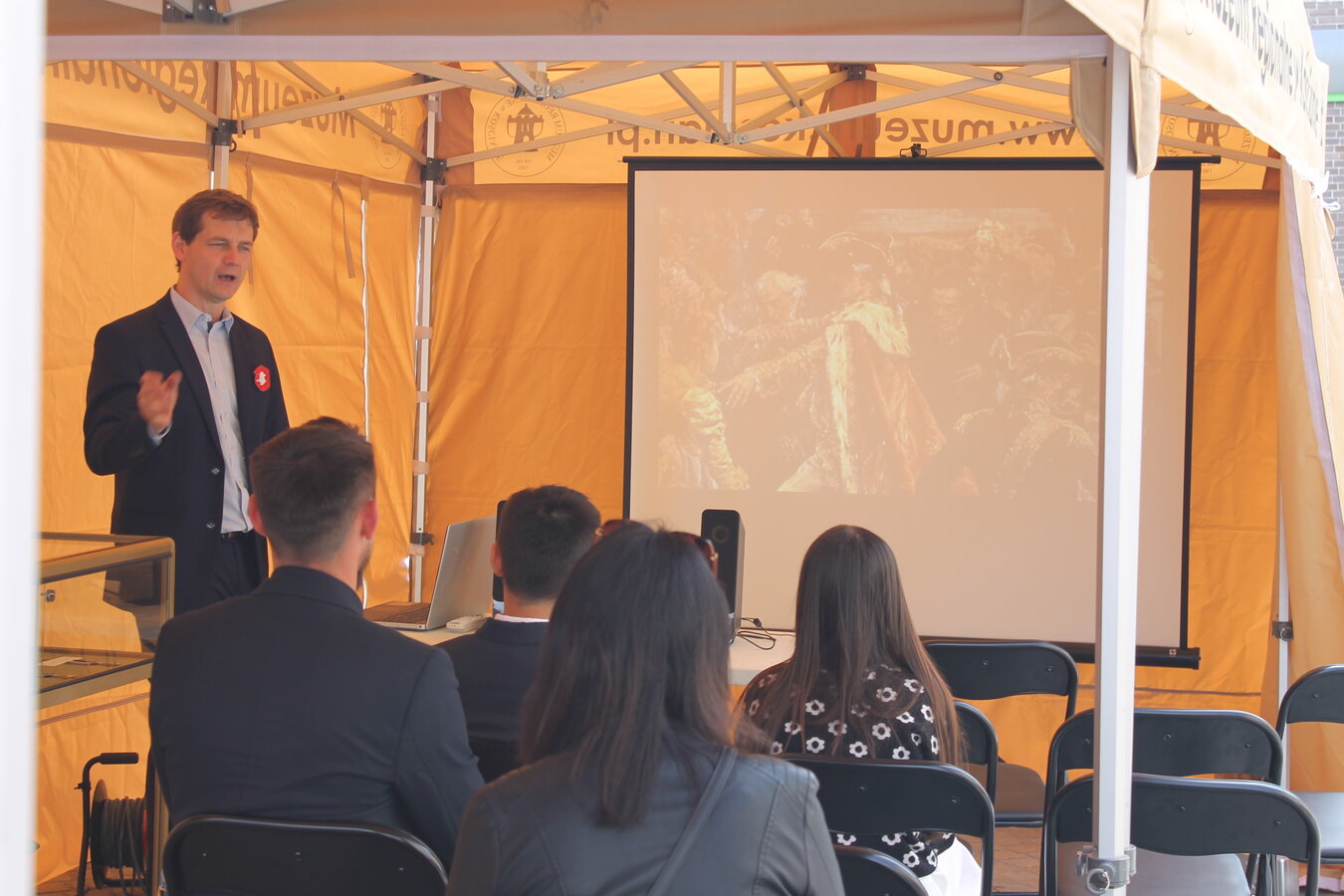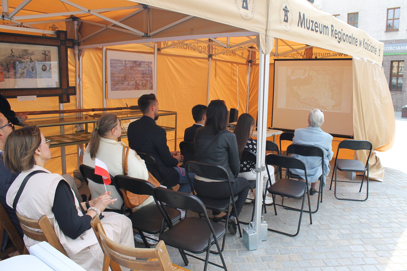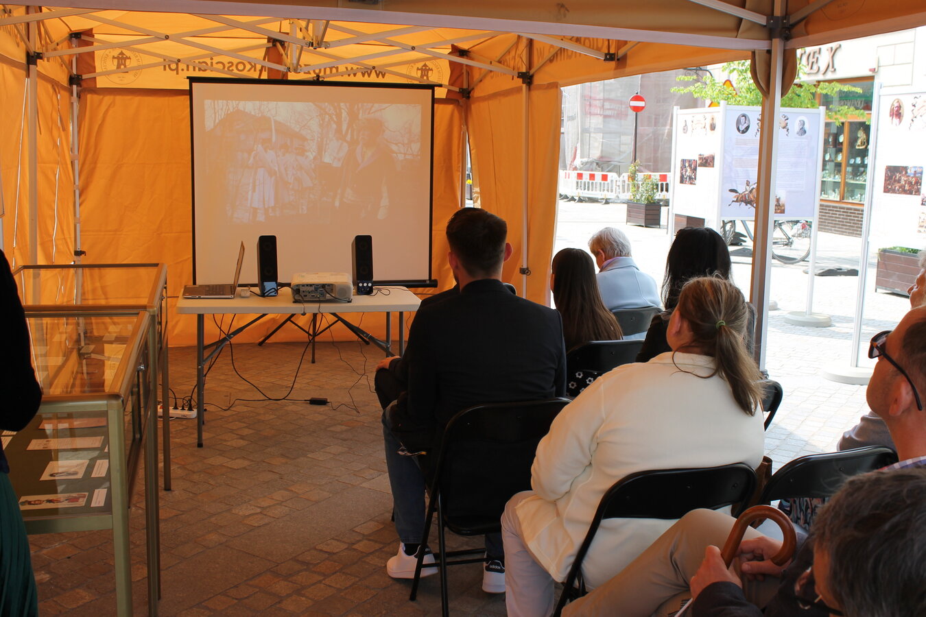 W ustawionym namiocie zaprezentowano dwa filmy z serii "Historia w ożywionych obrazach". Pierwszy z nich to "Konstytucji 3 Maja1791 roku" Jana Matejki, drugi to "Przysięga Kościuszki na rynku w Krakowie 24 marca 1794 r." Wojciecha Kossaka.