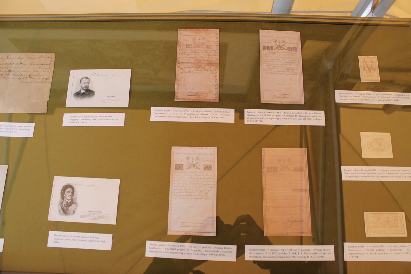 Dodatkowo w dwóch gablotach można było zobaczyć medale oraz przedmioty z okresu insurekcji kościuszkowskiej, w tym oryginalną kosę z czasów powstania, a także fotograwiurę z przełomu XIX i XX w. R. Paulussena w Wiedniu wg. obrazu Jana Styki pt: "Polonia. Konstytucja 3 Maja 1791 r." wraz z opisem obrazu.