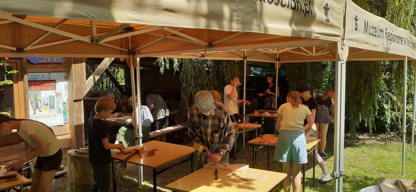 W poniedziałek 8 lipca rozpoczęła się XI. edycja warsztatów rzeźbienia w drewnie. W czasie 5-cio dniowych zajęć 12. uczestników pod opieką Pana Mariana Malińskiego, kościańskiego artysty-rzeźbiarza, będzie tworzyć swoje prace w drewnie. Zajęcia odbywają się w pracowni Pana Malińskiego, która znajduje się na Skwerze Krimpen w wiatraku "Michał".