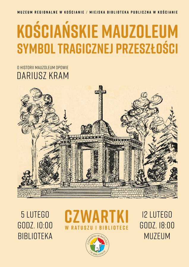 Miejska Biblioteka Publiczna oraz Muzeum Regionalne w Kościanie zapraszają na wykład "Kościańskie Mauzoleum - symbol tragicznej przeszłości", który odbędzie się w ramach Czwartków w Ratuszu i Bibliotece. O historii Mauzoleum opowie Dariusz Kram, Dyrektor Muzeum Regionalnego w Kościanie.